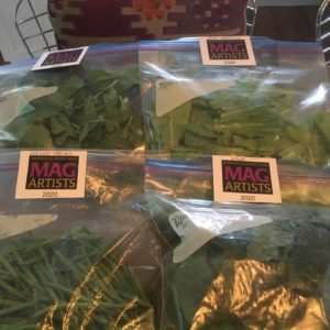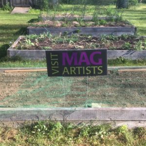 The MAG community garden plot has been producing an abundant assortment of organic and nutritious vegetables for the community Food Cupboard through the Sustainable Merrickville-Wolford Grow a Row initiative — kale, arugula, baby Romaine lettuce and French beans. We have also recently acquired an additional plot to add to our efforts. Artists love to garden!