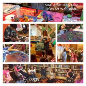MAG Artists is partnering with Gloria Stowell as part of the Brenda Carter Memorial Art Workshops for children 8 to 14. Mary Loos (painter) assisted with Superhero Spatter Silhouettes, the first of four Heroes Art Workshops 2018/2019 being held in the Merrickville Public Library.